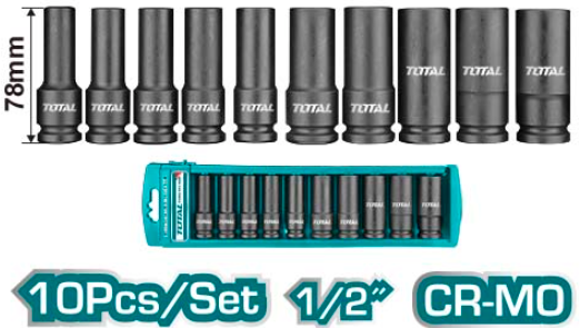 JUEGO COPAS DE IMPACTO 1/2″ INDUSTRIAL LARGA 78MM 10PZ 10-24MM TOTAL THKISD12102L