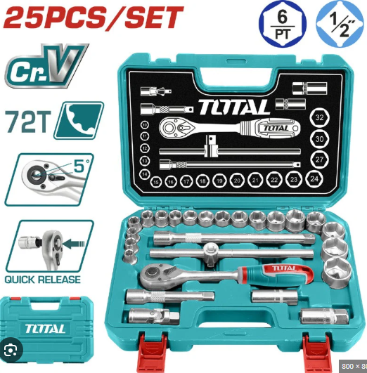 JUEGO DE COPAS CON RATCHET 1/2 MM 25PZ TOTAL THT121251