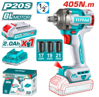 PISTOLA DE IMPACTO INALAMBRICA 1/2 20V 405NM 1 BATERÍA TOTAL UTIWLI20455